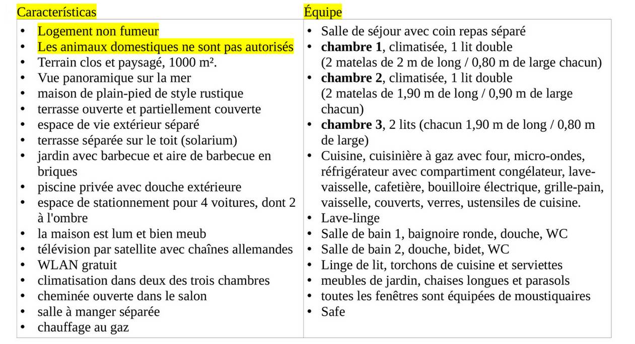 L'espace extérieur comprend un jardin méditerranéen avec piscine et douche extérieure, plusieurs terrasses et un espace barbecue en briques. Des places de parking sont disponibles pour 4 voitures, dont 2 avec de l'ombre.